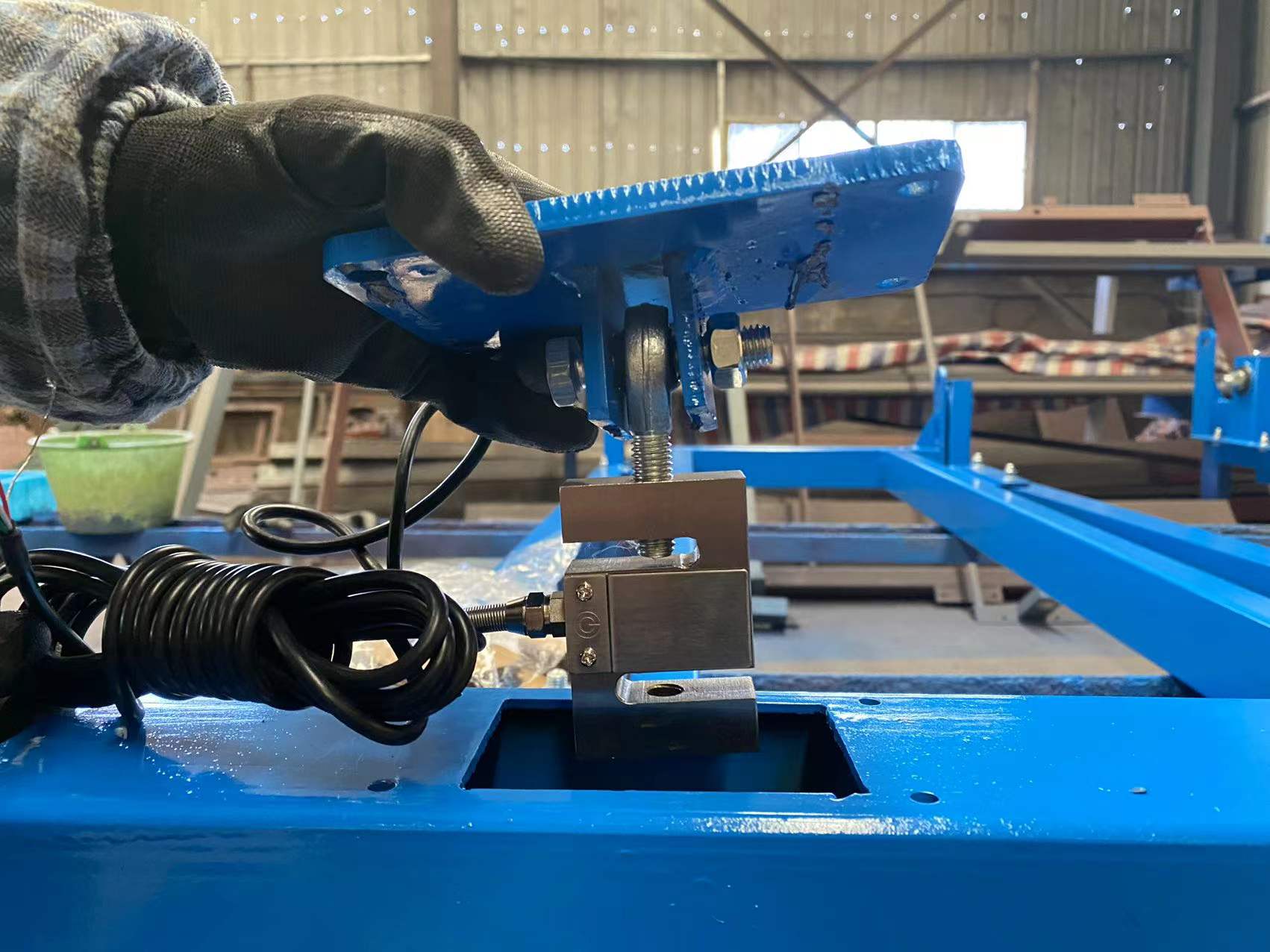 由于内框一端通过轴和轴承与外框一端连接,内框另一端通 过二个悬挂式拉力传感器与固定于外框另一端的支撑架连接,结构简单、稳定,工作可靠, 使用方便采用吊挂式拉力传感器,使型式与结构更加合理,具有良好的传力体系,能克服 原来水平力的出现,丝瓜视频污污下载精度更高;采用一个整体内框,强度高,刚性好,挠度与变形小; 结构简单,便于制造与维修,成本低,而且重量轻,积灰的水平面积最小,现场安装适应性 广;由于悬挂式拉力传感器与固定于外框另一端的支撑架连接有拉力调节螺杆,现场安装 调试工作方便简单。